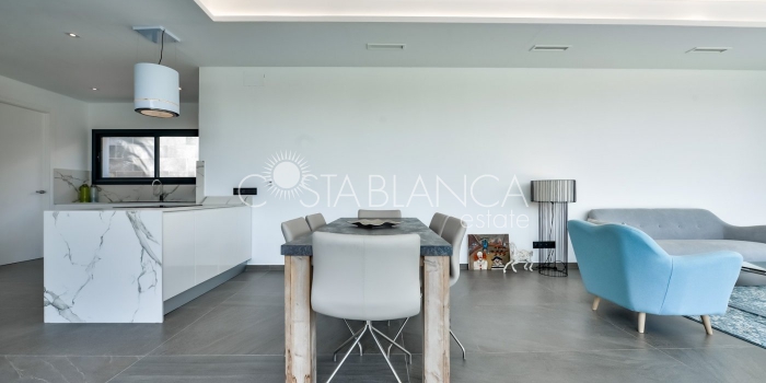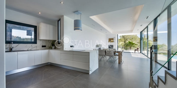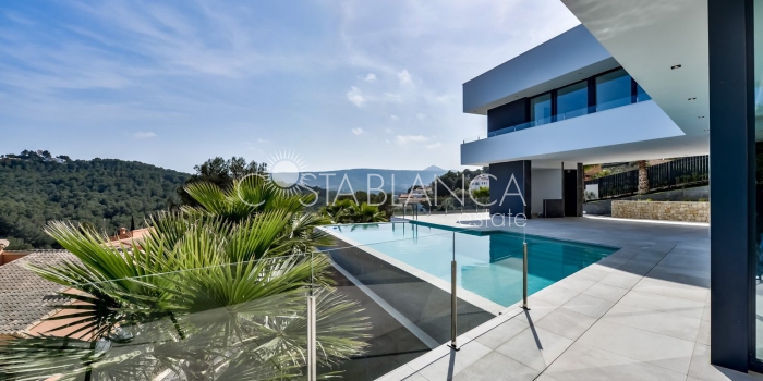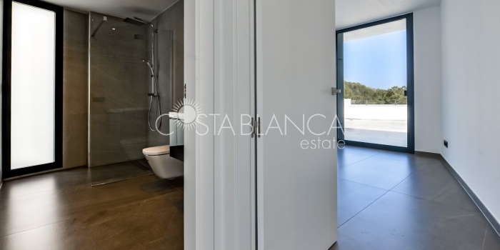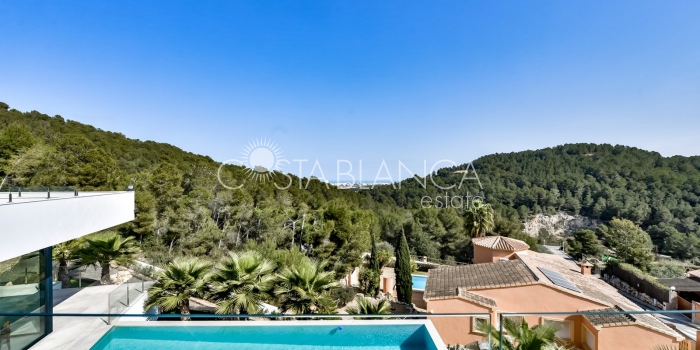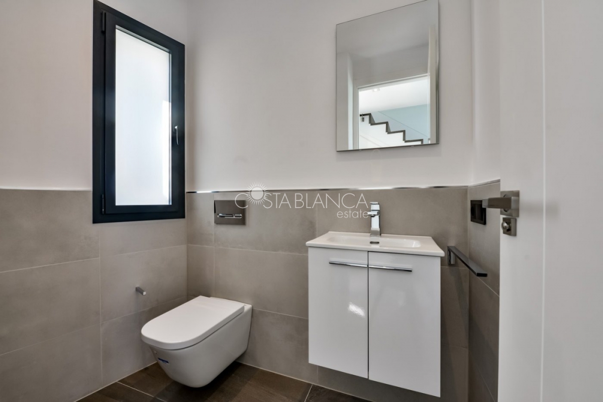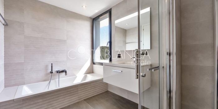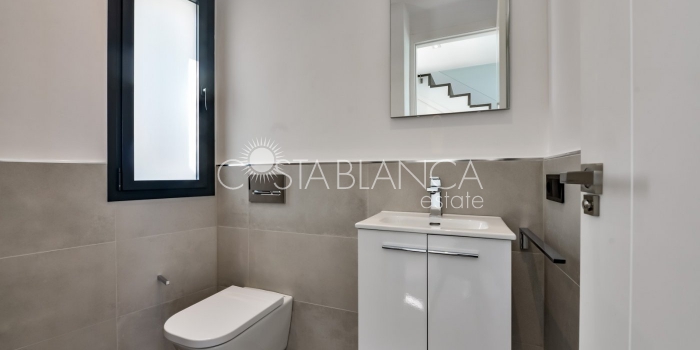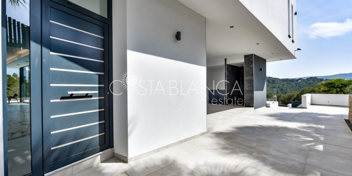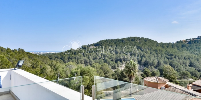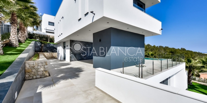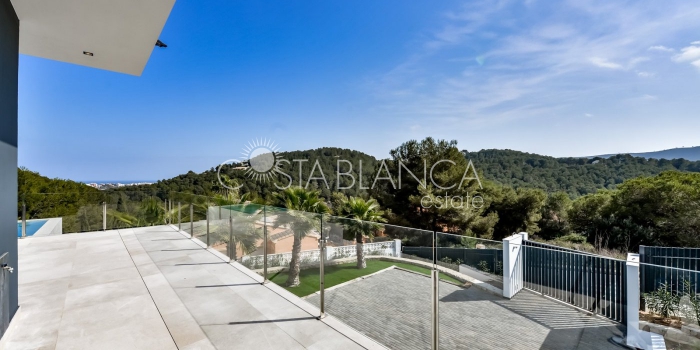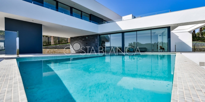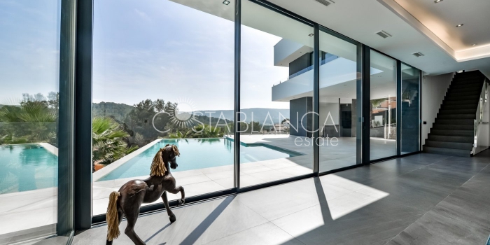 LUKSUSOWA WILLA Z WIDOKIEM NA MORZE W UPRZYWILEJOWANEJ OKOLICY Imponująca nowoczesna willa w uprzywilejowanej lokalizacji z widokiem na morze w Urb Tosalet (Jávea). Z posesji roztacza się piękny widok na zielone wzgórza i morze. W pogodne dni można nawet zobaczyć wyspę Ibizę. Nowoczesna architektura o prostych liniach i formach, ekscytujące połączenie elementów klasycznych i awangardowych materiałów. W piwnicy znajduje się podwójny garaż z automatyczną bramą oraz przestronna piwnica. Parter podzielony jest na duży salon z jadalnią, kuchnię z przyległym pomieszczeniem gospodarczym oraz toaletę dla gości. Duży, zadaszony taras z miejscem do grillowania zapewnia zacienione miejsce w miesiącach letnich, skąd można podziwiać piękne widoki na morze. Otwarty taras z dużym basenem z efektem przelewowym, dużym wejściem i podwodnym oświetleniem. Na piętrze znajdują się 3 sypialnie i 2 łazienki. Główna sypialnia ma własną łazienkę. Wszystkie sypialnie mają dostęp do tarasu na dachu. Kuchnia: w pełni wyposażona i umeblowana, płyta ceramiczna, piekarnik, kuchenka mikrofalowa, zmywarka i wysokiej jakości meble. Ogrzewanie - ciepła woda użytkowa: ogrzewanie zapewnia pompa ciepła wspomagana energią słoneczną. Klimatyzacja: centralny system klimatyzacji, który rozprowadza zimne powietrze do różnych obszarów budynku.