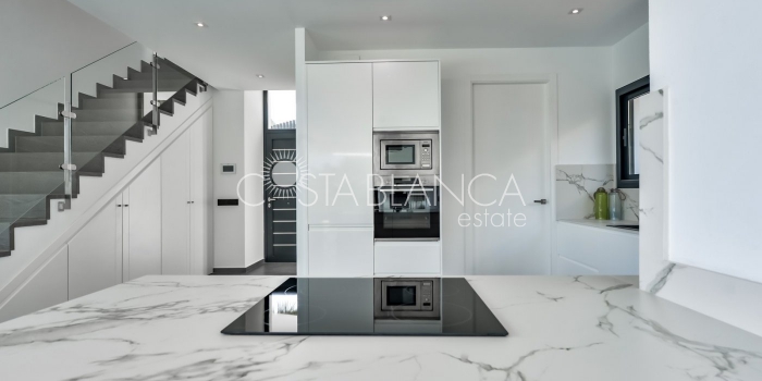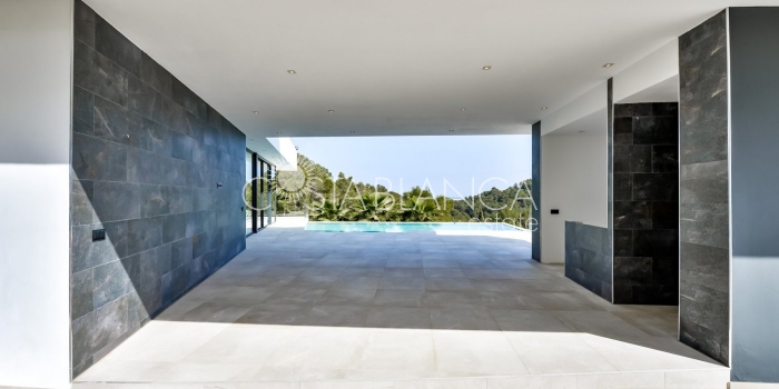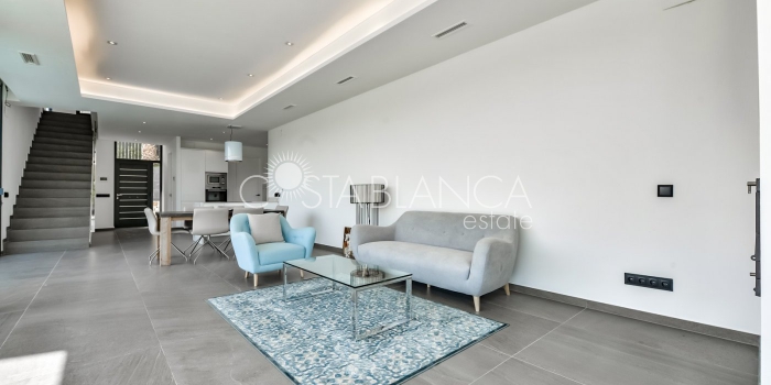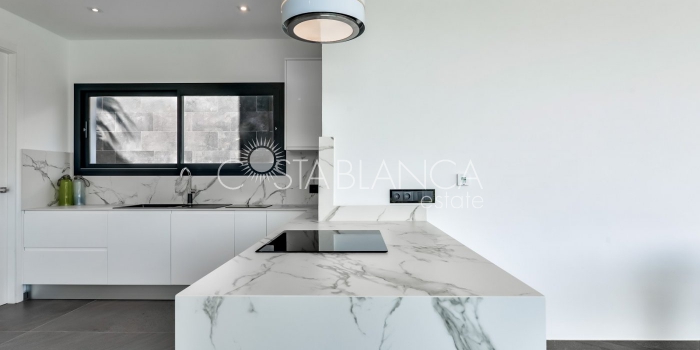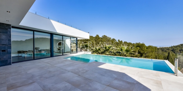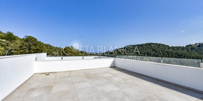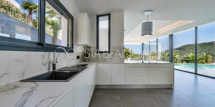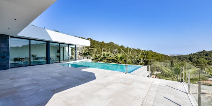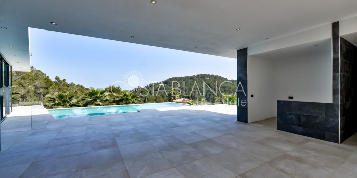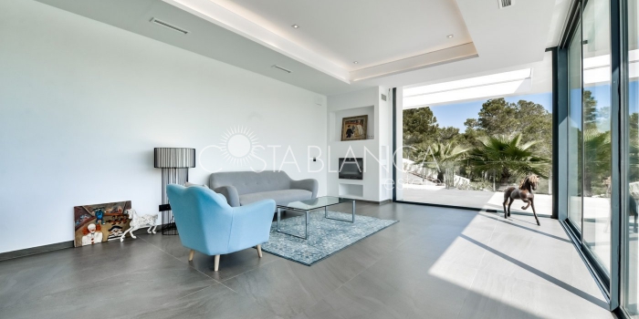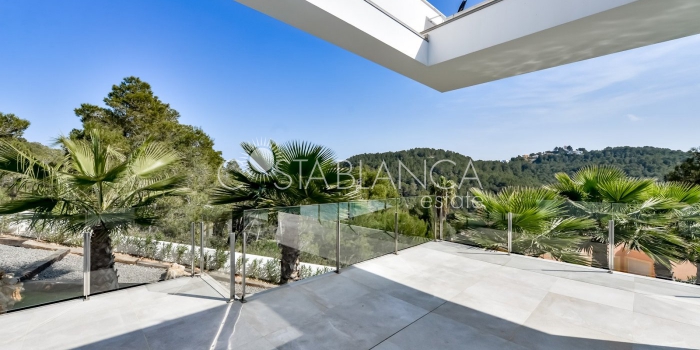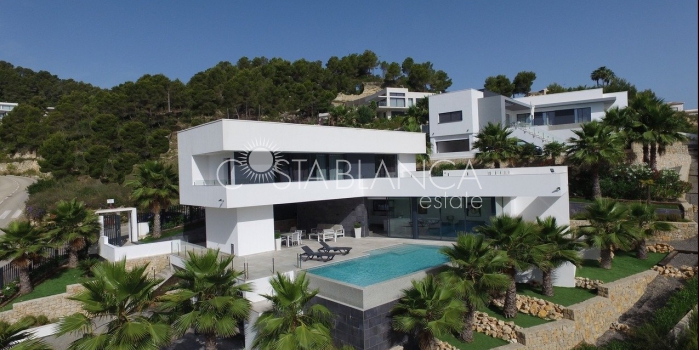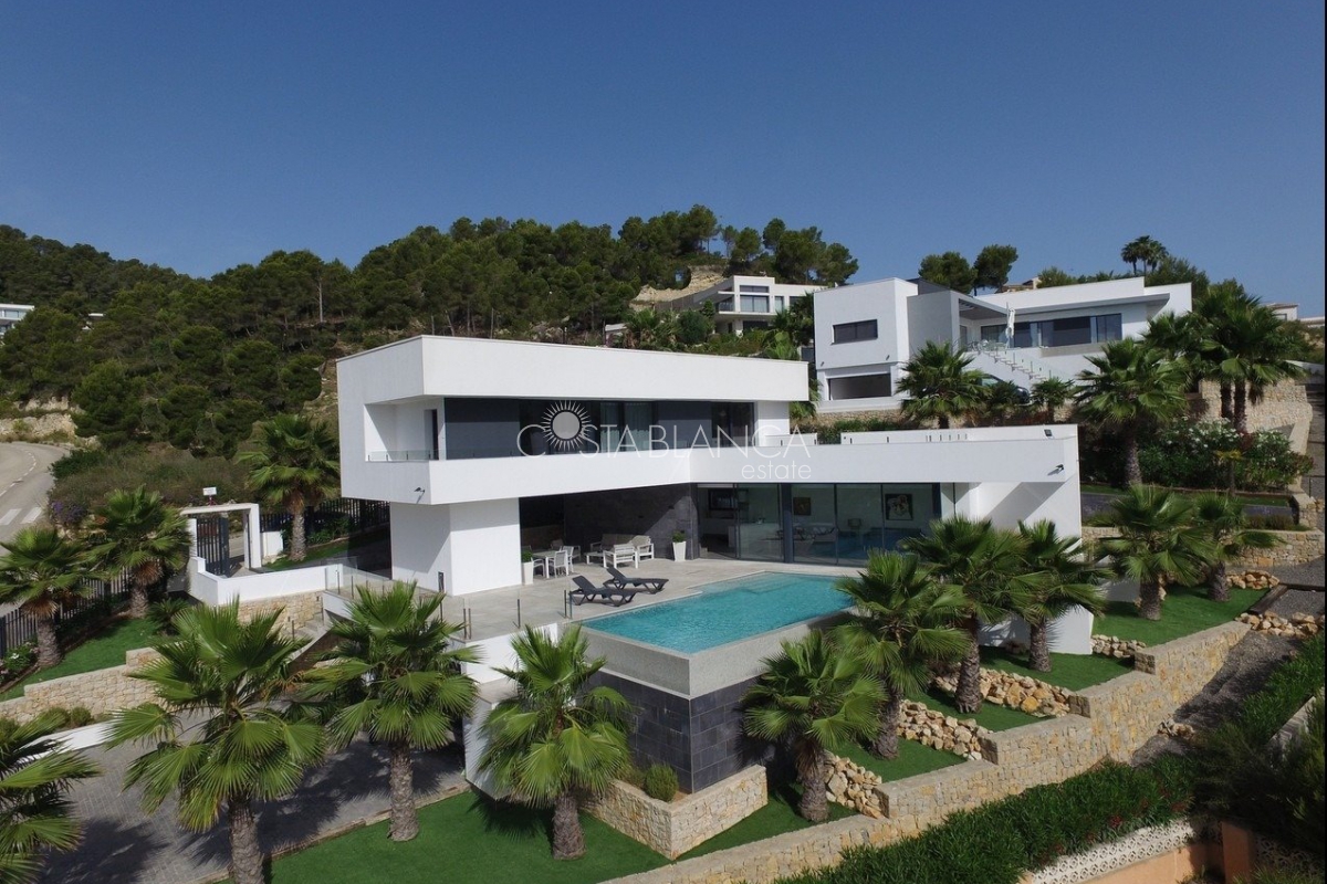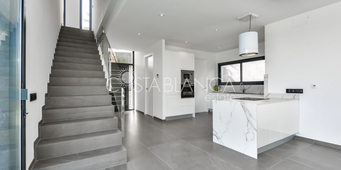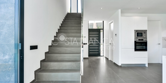 LUKSUSOWA WILLA Z WIDOKIEM NA MORZE W UPRZYWILEJOWANEJ OKOLICY Imponująca nowoczesna willa w uprzywilejowanej lokalizacji z widokiem na morze w Urb Tosalet (Jávea). Z posesji roztacza się piękny widok na zielone wzgórza i morze. W pogodne dni można nawet zobaczyć wyspę Ibizę. Nowoczesna architektura o prostych liniach i formach, ekscytujące połączenie elementów klasycznych i awangardowych materiałów. W piwnicy znajduje się podwójny garaż z automatyczną bramą oraz przestronna piwnica. Parter podzielony jest na duży salon z jadalnią, kuchnię z przyległym pomieszczeniem gospodarczym oraz toaletę dla gości. Duży, zadaszony taras z miejscem do grillowania zapewnia zacienione miejsce w miesiącach letnich, skąd można podziwiać piękne widoki na morze. Otwarty taras z dużym basenem z efektem przelewowym, dużym wejściem i podwodnym oświetleniem. Na piętrze znajdują się 3 sypialnie i 2 łazienki. Główna sypialnia ma własną łazienkę. Wszystkie sypialnie mają dostęp do tarasu na dachu. Kuchnia: w pełni wyposażona i umeblowana, płyta ceramiczna, piekarnik, kuchenka mikrofalowa, zmywarka i wysokiej jakości meble. Ogrzewanie - ciepła woda użytkowa: ogrzewanie zapewnia pompa ciepła wspomagana energią słoneczną. Klimatyzacja: centralny system klimatyzacji, który rozprowadza zimne powietrze do różnych obszarów budynku.