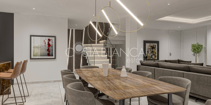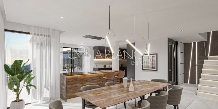 Ta luksusowa willa w Calpe, nowo wybudowana w 2024 roku, oferuje przestronną powierzchnię mieszkalną 410,8 m2. Posiada piękny ogród, prywatny basen i ogrzewanie podłogowe zapewniające całoroczny komfort. Nieruchomość obejmuje cztery sypialnie i pięć łazienek, zapewniając mnóstwo miejsca dla rodziny lub gości. Są trzy tarasy, które oferują przestrzeń życiową na świeżym powietrzu z pięknymi widokami, a także przestronny salon i w pełni wyposażoną kuchnię. Willa jest również wyposażona w nowoczesne udogodnienia, takie jak klimatyzacja, winda, garaż i dodatkowe miejsca parkingowe. Na świeżym powietrzu znajduje się miejsce do grillowania i weranda. Willa znajduje się zaledwie 2,5 km od plaży, centrum miasta Alicante jest oddalone o 25 km, a lotnisko znajduje się 70 km od obiektu. Słynny park rozrywki Terra Mítica jest również oddalony o 25 km, co czyni to miejsce idealnym zarówno do relaksu, jak i przygody.