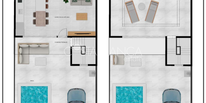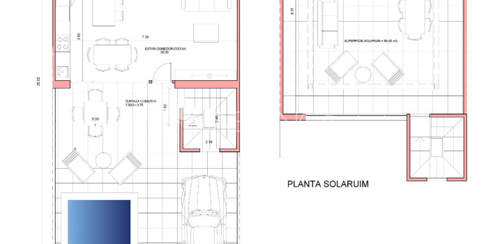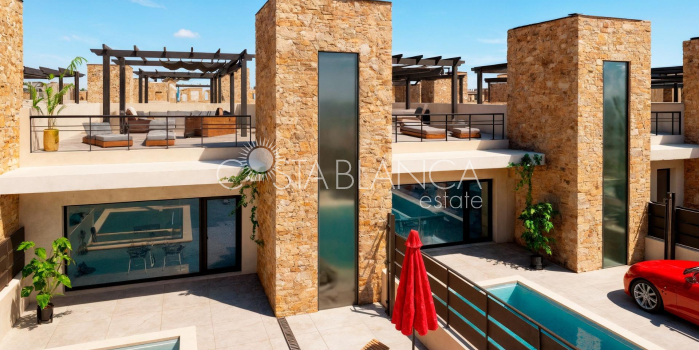 Nowa inwestycja mieszkaniowa składająca się z willi i domów szeregowych w Fuente Álamo, w regionie Murcja. Lokalizacja ta oferuje wyjątkowe otoczenie przyrody, z dala od zgiełku dużych miast i turystycznego natężenia na wybrzeżu. Ponadto jesteśmy zaangażowani w działania na rzecz zrównoważonego rozwoju, minimalizując nasz wpływ na środowisko i maksymalizując integrację z lokalną społecznością. Tutaj Twoje marzenia o spokojnym i zrównoważonym stylu życia stają się rzeczywistością. Wyobraź sobie, że każdego ranka budzisz się w imponującym otoczeniu natury, w spokoju i wśród wyjątkowego piękna murcyjskiej wsi. W tej inwestycji priorytetem jest energooszczędność, wykorzystanie materiałów przyjaznych dla środowiska oraz harmonijna integracja z otoczeniem. Od projektu nieruchomości po planowanie inwestycji – wszystko ma na celu zmniejszenie naszego śladu węglowego i promowanie odpowiedzialnych praktyk we wszystkich działaniach. Kompletna instalacja klimatyzacji kanałowej, chłodzenie/ogrzewanie. System wideodomofonu. Drzwi wejściowe w kolorze lakierowanym, z zamkiem i okuciami antywandalskimi. Szafy z bagażnikiem, wyłożone wewnątrz, lakierowane na biało. Meble kuchenne wraz z wyposażeniem AGD. Ciepła woda z aerotermii. Elektryczne rolety. Pergole w solarium. Prywatny basen o wymiarach 2,5 x 4,5 m z podwodnym oświetleniem i systemem oczyszczania chlorem solnym. Instalacja pod kuchnię zewnętrzną/jacuzzi w solarium. Fuente Álamo de Murcia to miejscowość i gmina w regionie Murcji, na południu Hiszpanii. Położona jest 22 km na północny zachód od Kartageny i 35 km na południowy zachód od Murcji. Miasto leży w dorzeczu Morza Menor, otoczone pasmami górskimi Algarrobo, Los Gómez, Los Victorias i Carrascoy. Woda z tych gór spływa w dół Rambla de Fuente Álamo, a następnie do Morza Menor. Fuente Álamo znajduje się 30 minut od lotniska Murcia - Corvera. Najbliższe sklepy znajdują się w odległości 6 km.