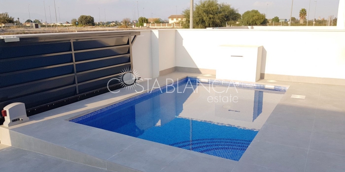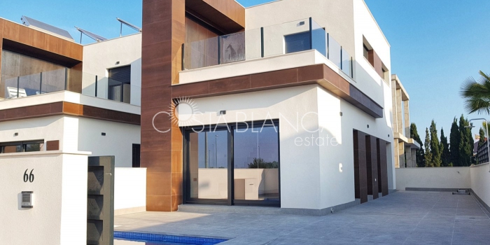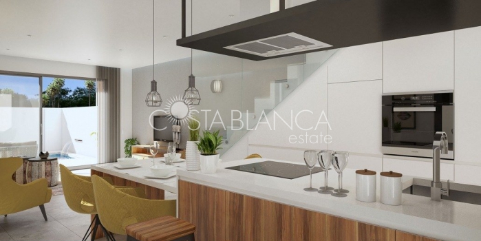 NOWE WILLE W ZABUDOWIE BLIŹNIACZEJ W DAYA NUEVA Nowe wille w zabudowie bliźniaczej w nowej części Daya Nueva. Zaledwie kilka minut spacerem do centrum miasta. Villas ma 3 sypialnie, 2 łazienki, prywatny ogród z basenem, jadalnia - salon z otwartą kuchnią, sypialnia z wyposażonymi szafami, łazienka na parterze i na pierwszym piętrze 2 sypialnie, wyposażone szafy i łazienka. Nueva Daya jest idealnym połączeniem pomiędzy relaksującym i wygodnym wiejskim stylem życia i tętniącymi życiem obszarami nadmorskimi Costa Blanca. Nowa spokojna dzielnica mieszkalna, około 10 minut od plaży La Marina del Pinet i Guardamar del Segura. Łatwy dostęp do autostrady A-70 i około 25 minut od międzynarodowego lotniska w Alicante.