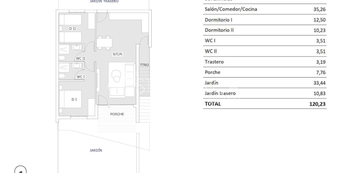 Nowe bungalowy w San Miguel de Salinas z 2 basenami wspólnymi Śródziemnomorski styl życia w naturalnym otoczeniu Odkryj tę nowoczesną osiedle nowych bungalowów w San Miguel de Salinas, miejscowości położonej na południu prowincji Alicante, należącej do regionu Vega Baja del Segura. Ta urocza gmina łączy bliskość morza z spokojem natury, dzięki czemu jest idealnym miejscem zarówno na stałe zamieszkanie, jak i na wakacje. Opcje mieszkaniowe dla każdego stylu życia Osiedle oferuje apartamenty typu bungalow z 2 lub 3 sypialniami w dwóch wariantach: Parter z prywatnym ogrodem i schowkiem Piętro z prywatnym solarium Każdy dom został zaprojektowany z myślą o nowoczesności i funkcjonalności, zapewniając komfort, naturalne światło i przestrzeń na świeżym powietrzu, aby cieszyć się śródziemnomorskim klimatem przez cały rok. Pomieszczenia wspólne dla całej rodziny Osiedle jest całkowicie ogrodzone i posiada doskonałe pomieszczenia wspólne: 2 duże baseny dla dorosłych i dzieci Ponad 2600 m² terenów zielonych Plac zabaw Dzięki tym udogodnieniom osiedle jest idealnym miejscem dla rodzin, par i emerytów poszukujących wysokiej jakości życia w bezpiecznym i spokojnym otoczeniu. Nowoczesne materiały i energooszczędność Domy zostały wykończone z wysokiej jakości materiałów i z dbałością o szczegóły: W pełni wyposażona kuchnia Zewnętrzne okna z przegrodą termiczną i podwójnymi szybami Zabezpieczone drzwi wejściowe Meble łazienkowe w cenie Instalacja klimatyzacji typu split w salonie i sypialniach Doskonała lokalizacja w pobliżu pola golfowego, plaż i usług San Miguel de Salinas jest strategicznie położone w pobliżu atrakcji turystycznych i przyrodniczych: Pola golfowe Vistabella, Las Colinas i Campoamor w odległości mniej niż 10 km Plaże Orihuela Costa w odległości 11 km Laguny Torrevieja i La Mata w odległości zaledwie 8 km Centrum handlowe La Zenia Boulevard w odległości 9 km Lotnisko Alicante-Elche 58 km (35 minut jazdy samochodem) Międzynarodowe lotnisko w Murcji 63 km (1 godzina jazdy samochodem) Twój nowy dom na Costa Blanca Te nieruchomości stanowią doskonałą okazję dla osób poszukujących jakości, komfortu i lokalizacji. Skontaktuj się z nami już teraz, aby uzyskać więcej informacji lub umówić się na wizytę i zrobić pierwszy krok w kierunku życia na Costa Blanca.