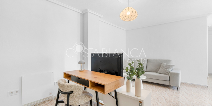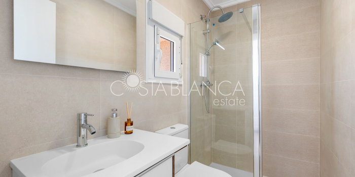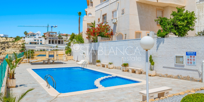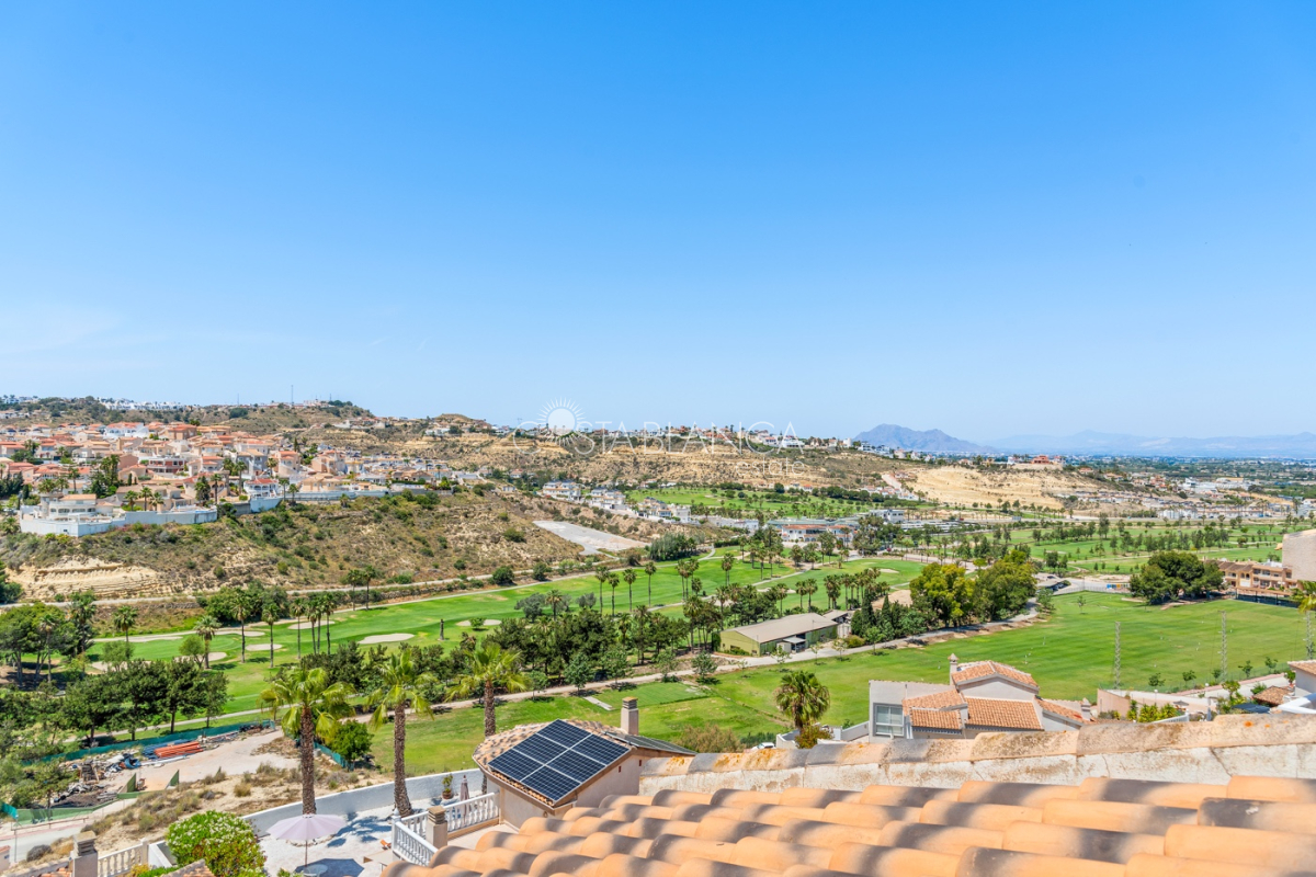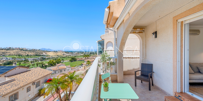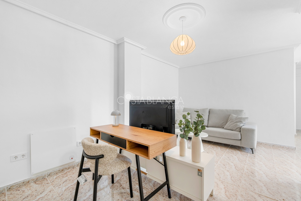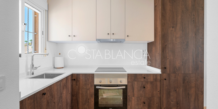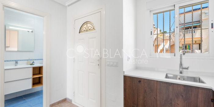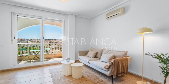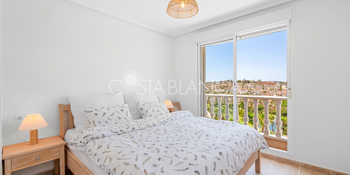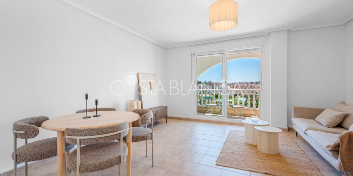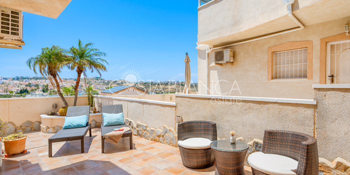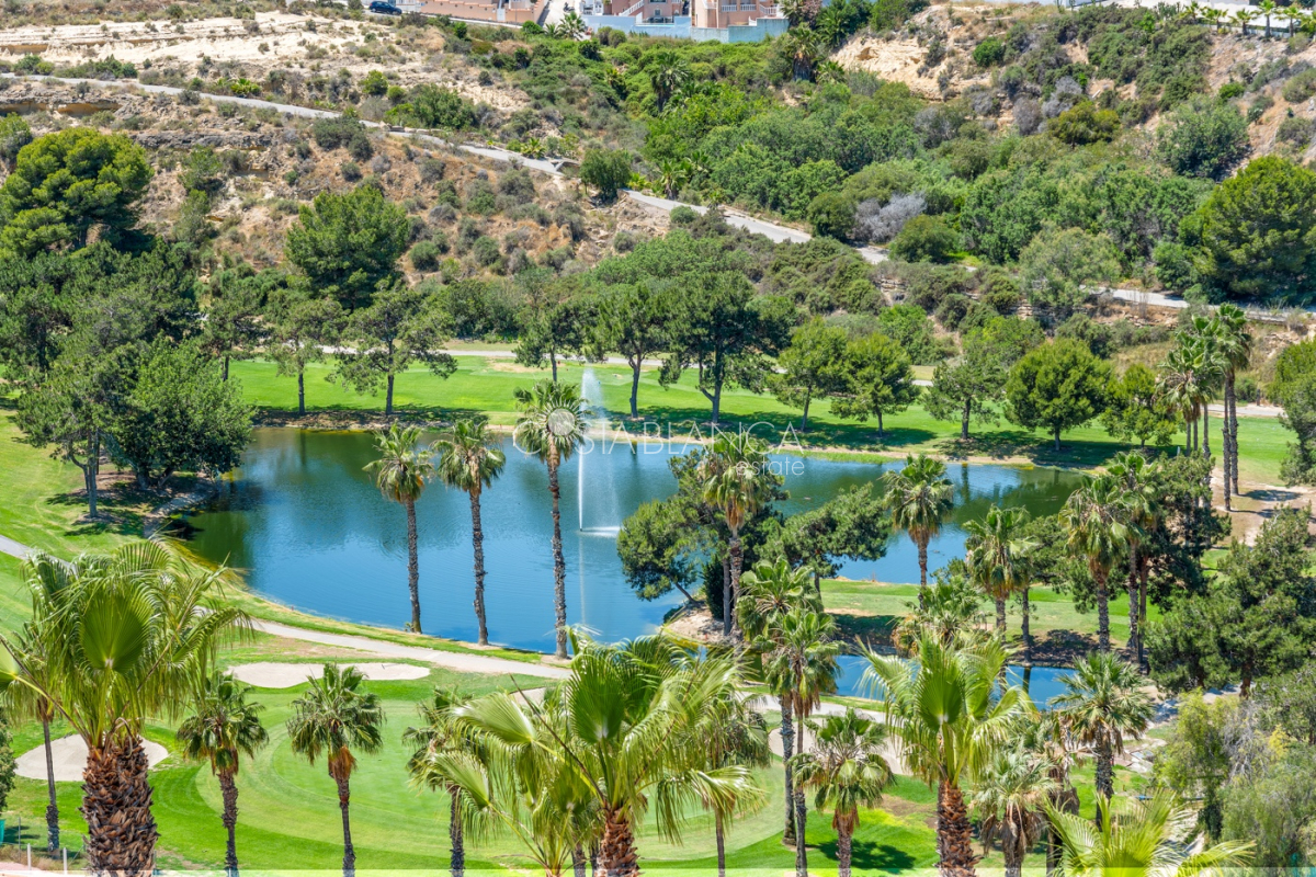 Bliźniak z 3 sypialniami i pięknym widokiem na pole golfowe La Marquesa. Nieruchomość, wybudowana w 2006 roku, znajduje się na działce o powierzchni 137 m² i oferuje 105 m² przestrzeni mieszkalnej rozłożonej na trzech poziomach. Na głównym piętrze znajduje się niedawno odnowiona, w pełni wyposażona kuchnia otwarta na jadalnię i salon w jasnym, otwartym układzie. Na tym poziomie znajduje się również toaleta dla gości oraz dwa zewnętrzne tarasy: balkon od strony południowo-zachodniej z otwartym widokiem na pole golfowe La Marquesa i tereny zielone oraz uroczy przedni taras wychodzący na cichą ulicę – idealny na posiłki na świeżym powietrzu.Na pierwszym piętrze znajdują się dwie dodatkowe sypialnie z wbudowanymi szafami oraz łazienka. Z głównej sypialni można podziwiać piękne widoki na pole golfowe i góry. Na dolnym poziomie znajduje się przestronny pokój rekreacyjny, sypialnia, nowo wyremontowana łazienka oraz pralnia. Poziom ten prowadzi na duży, południowo-zachodni taras z częścią ogrodową i prysznicem zewnętrznym – idealny do relaksu w słońcu lub spotkań z gośćmi. Na najwyższym piętrze znajduje się prywatne solarium na dachu z panoramicznym widokiem na okoliczny krajobraz i pole golfowe – idealne miejsce do opalania się, czytania lub podziwiania zachodów słońca w całkowitej prywatności. Nieruchomość jest wyposażona w klimatyzację i trzy wbudowane szafy. Dzięki południowo-zachodniej orientacji zapewnia doskonałe nasłonecznienie przez cały dzień i dostęp do zadbanego basenu wspólnotowego. Położenie zaledwie kilka minut od pola golfowego La Marquesa czyni ją idealną dla miłośników golfa lub osób szukających spokojnej, zielonej okolicy blisko udogodnień.