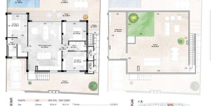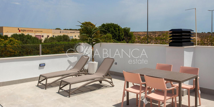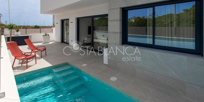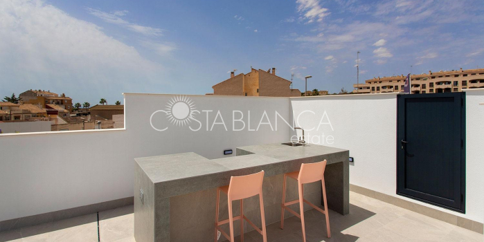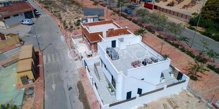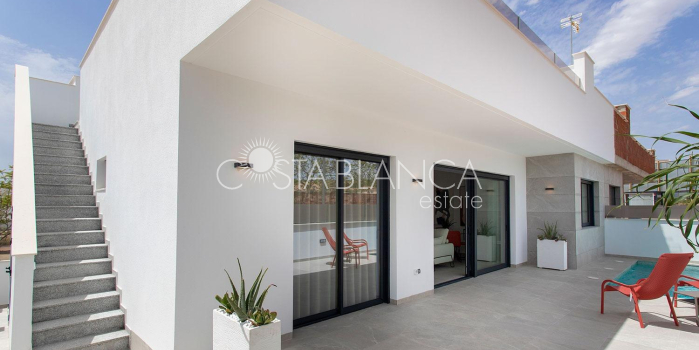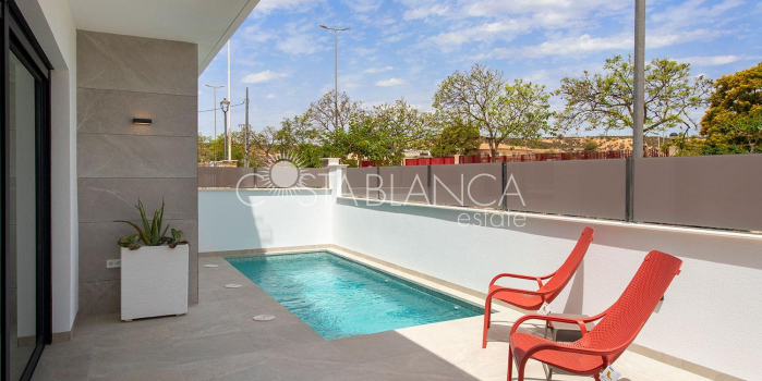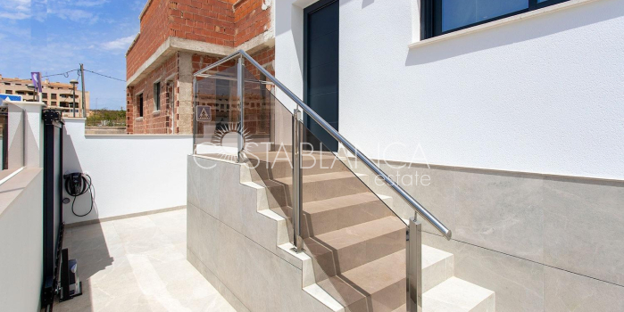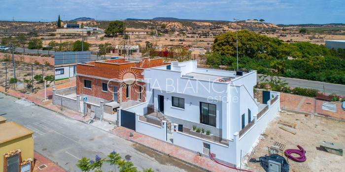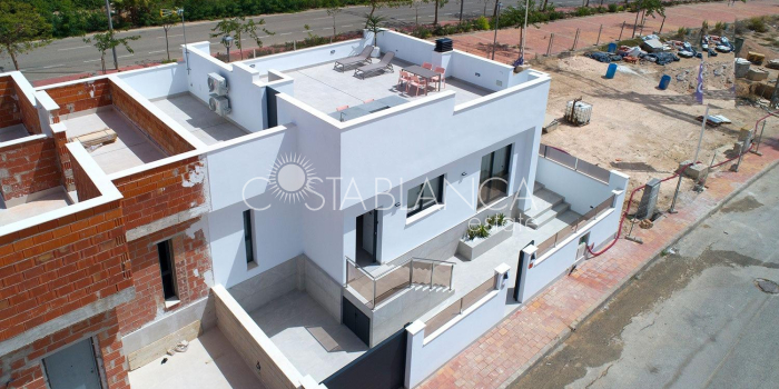 Nowe bliźniacze wille w Sucina: ostatnia jednostka w pełni wyposażona i gotowa do zamieszkania Wyjątkowa okazja w Sucina To Twoja szansa na zakup ostatniej dostępnej jednostki w tej nowoczesnej, nowo wybudowanej inwestycji, która wcześniej służyła jako dom pokazowy. Jest ona gotowa do zamieszkania i w pełni wyposażona w meble, sprzęt AGD, oświetlenie wewnętrzne i zewnętrzne, klimatyzację, ładowarkę do samochodów elektrycznych oraz letnią kuchnię na świeżym powietrzu z lodówką. Wyjątkowa okazja w jednym z najbardziej urokliwych miast Costa Calida. Nowoczesny design skupiony na świetle i komforcie Te bliźniacze wille wyróżniają się eleganckim i czystym, nowoczesnym designem, a ich układ został zaprojektowany tak, aby maksymalnie wykorzystać naturalne światło śródziemnomorskie. Główne pomieszczenia mieszkalne charakteryzują się otwartą koncepcją, w której kuchnia i salon płynnie się łączą, połączone stylową wyspą centralną. Przestrzeń ta przechodzi bezpośrednio do werandy i tarasu przy basenie, tworząc harmonijny styl życia wewnątrz i na zewnątrz, idealny na słoneczne dni. Mieszkanie na jednym poziomie z prywatnym basenem i solarium Willa posiada 3 sypialnie i 2 łazienki na jednym piętrze, a także wygodną zewnętrzną toaletę dla gości przy basenie. Główna sypialnia jest wyjątkowo jasna i oferuje łazienkę, garderobę oraz bezpośredni dostęp do głównego tarasu. Nieruchomość posiada również imponujące solarium o powierzchni 82 m2, idealne do opalania się lub stworzenia salonu na świeżym powietrzu. Willa, zbudowana na działce o powierzchni 211 m2, posiada parking poza drogą publiczną na terenie działki. Doskonała lokalizacja w pobliżu wszystkich usług Położona w odległości krótkiego spaceru od centrum Suciny, willa zapewnia bezpośredni dostęp do codziennych udogodnień, takich jak sklepy, restauracje i supermarkety. Sucina to tradycyjne hiszpańskie miasteczko, które w ostatnich latach zyskało na popularności dzięki spokojnemu stylowi życia, autentycznej atmosferze i bliskości wybrzeża. Piękne plaże Costa Calida i Mar Menor znajdują się zaledwie kilka minut drogi stąd. Odległości do najważniejszych punktów Lotnisko w Murcji 25 km Lotnisko w Alicante 75 km Plaże Mar Menor 15 km Najbliższe pole golfowe 4 km Port w San Pedro del Pinatar 20 km Ciesz się wysoką jakością życia w stylu śródziemnomorskim Zbudowane z doskonałych materiałów i zaprojektowane z myślą o komforcie, te wille oferują wyjątkową okazję do cieszenia się otwartymi przestrzeniami, naturalnym światłem i czystym powietrzem przez cały rok. Skontaktuj się z nami już dziś, aby umówić się na wizytę i zabezpieczyć ten ekskluzywny, gotowy do zamieszkania dom w Sucinie.